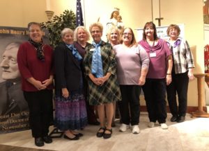 Green Lake CCW Vicariate (Madison DCCW) met on October 23 in Montello, WI at St. John the Baptist Church. “Life’s Journey, God’s Will” was the theme for the fall meeting. Ninety-one women attended from seventeen churches. Included were the five levels of membership of NCCW. L-R Ellen Martin – Co President Vicariate; Carol Rogers – MDCCW President; Janel Nickel – Co-President Elect Vicariate; Jane Schiszik – NCCW President Elect; Sue Koch – Co President Vicariate; Carolyn Zentner – Vicariate Secretary; Barb Mehling – Vicariate Treasurer; Mary Ann Bush – Co President Elect Vicariate.