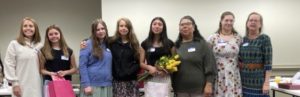 On March 14, 2026, the Smoky Mountain Deanery CCW of Knoxville, TN recognized 4 ladies with the Golden Rose Award, who exemplify spirituality, leadership and service in her church and community. The Golden Rose recipients, representing 4 churches in the Smoky MT Deanery are Anna Kate Coatney from Cathedral of the Most Sacred Heart of Jesus, Katelyn Witkemper from Holy Ghost, Karen Amayo Castro from Our Lady of Fatima, and Violet Grace Rapien from St. Francis of Assisi in Townsend. Karen Castro will represent The Smoky MT Deanery at the Knoxville DCCW Event on April 18, 2026 at St. Mary in Athens, TN. Pictured left to right are the recipients accompanied by a family member or friend: Anna Kate Coatney, Katelyn Witkemper. Karen Amayo Castro, Violet Grace Rapien